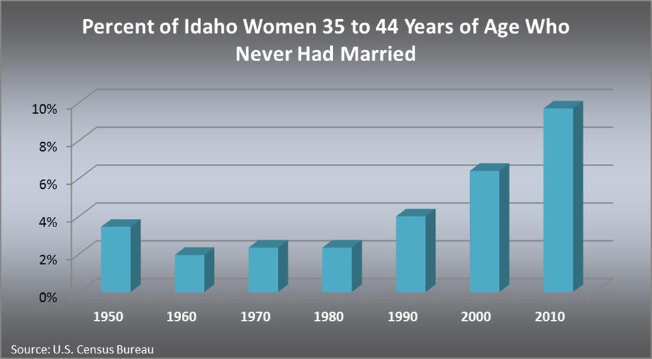Since the 1960s, Idaho, like the rest of the United States, has seen dramatic changes in marriage customs. They, in turn, affect the makeup of households, which determines the strength of consumer spending, home stability for children and the educational attainment and size of the available workforce.