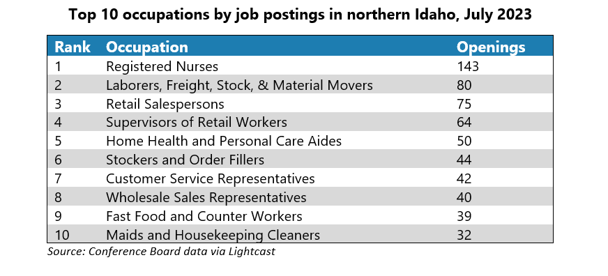 Northern top 10 occupations