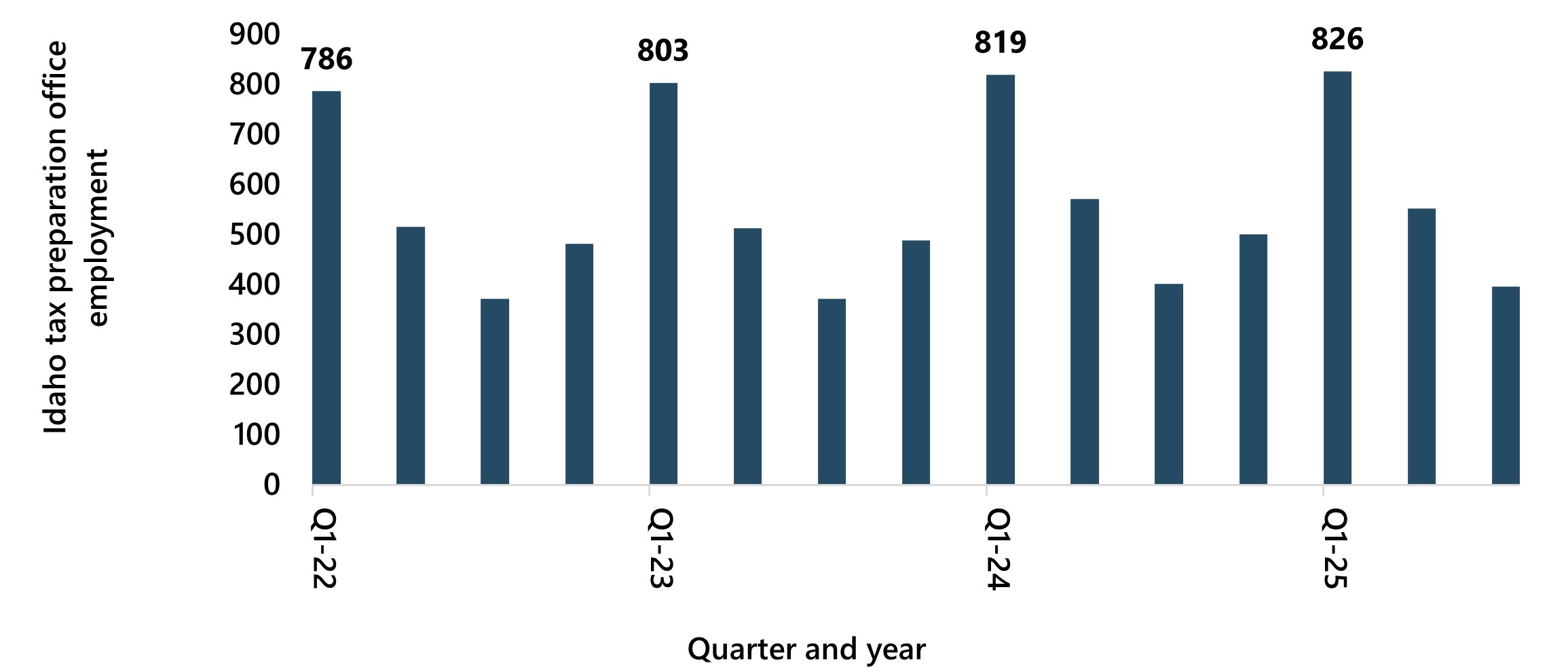 Figure 1 – Idaho’s tax preparation seasonal employment 2019 – 2025 Next → Source: Idaho Department of Labor, Quarterly Census of Employment and Wages (QCEW)